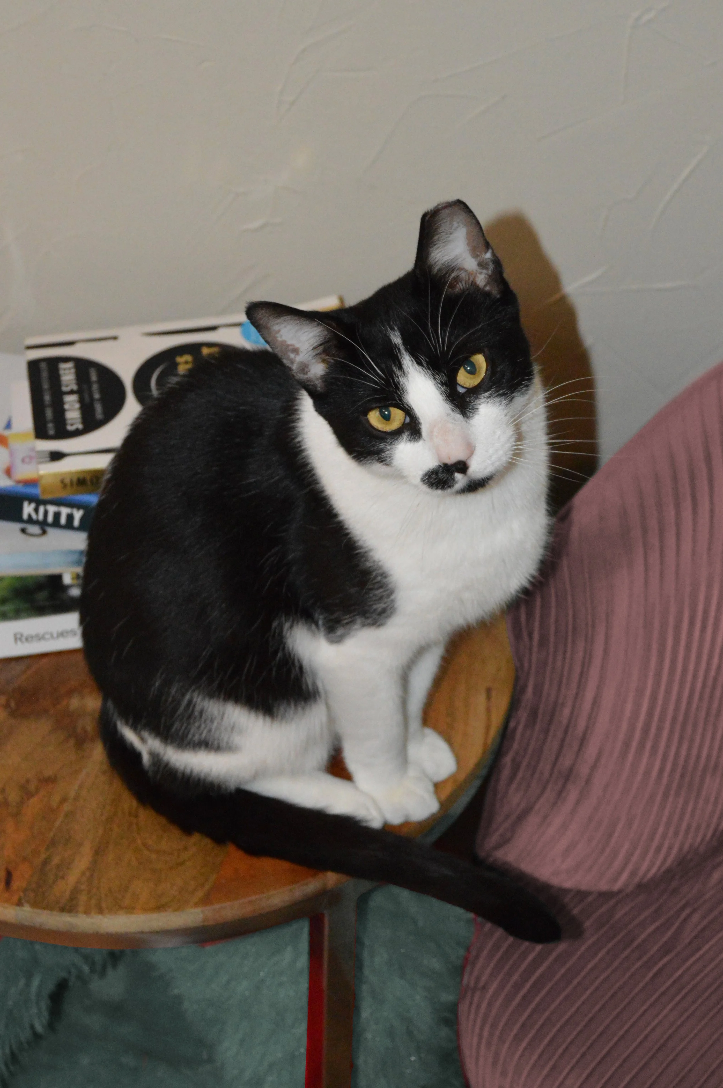 Hi, my name is Baby Blue. I am a 2-year-old, male, black and white cat. I was found outside living in a feral colony, but I am WAY too nice to live outside. I LOVE attention and can’t get enough of it! I want to be in your lap and be petted constantly. I also love other cats and would love a home with another confident cat. If you want a snuggle buddy, I’m your guy! I haven’t been introduced to dogs or to small children yet.