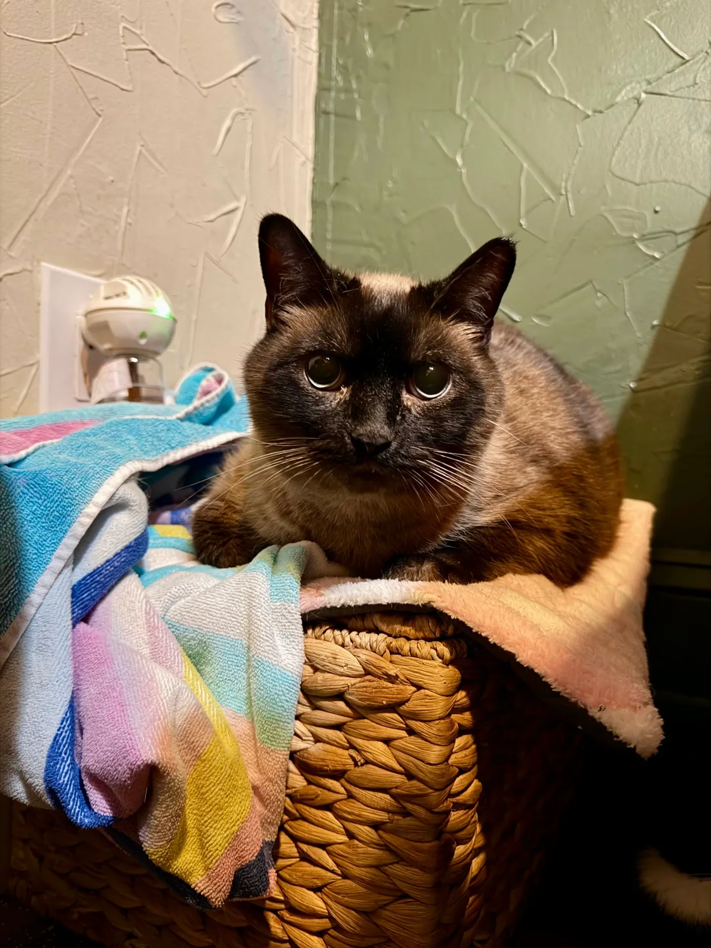 Hi, my name is Boo Boo. I am an 8-year-old, male, Siamese mix cat with beautiful blue eyes. My owner died, and her sister didn’t want my brother, Yogi, and I. So, Purring Hearts took us in to help us find new homes. I am a sweet boy and enjoy attention. Will you give me a forever home? I’d love to be adopted with my brother, Yogi, if possible. I haven’t met dogs or small children yet. Come and meet me at The Purrfect Bean! ADOPTION FEE: $150!