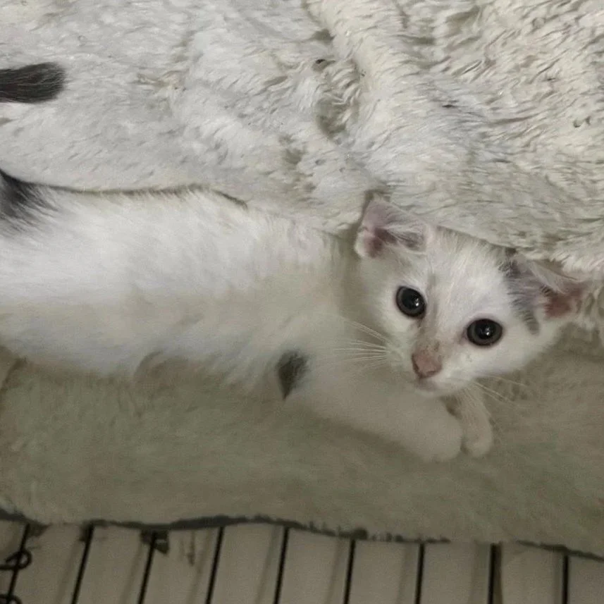Hi, my name is Burnt Marshmallow. I am a 4-month-old, male, white and gray kitten. I was found by myself at a tire shop, and Purring Hearts took me in and gave me a few family. I love to be held like a baby while having my tummy scratched! I’m also a very playful kitten – I love rough housing with my foster siblings and toys. I’ve declared toilet paper my enemy and must shred it the second I see it! Since I am so active, I MUST have another young, active cat at home to play with. I am also good with young kids and dogs.