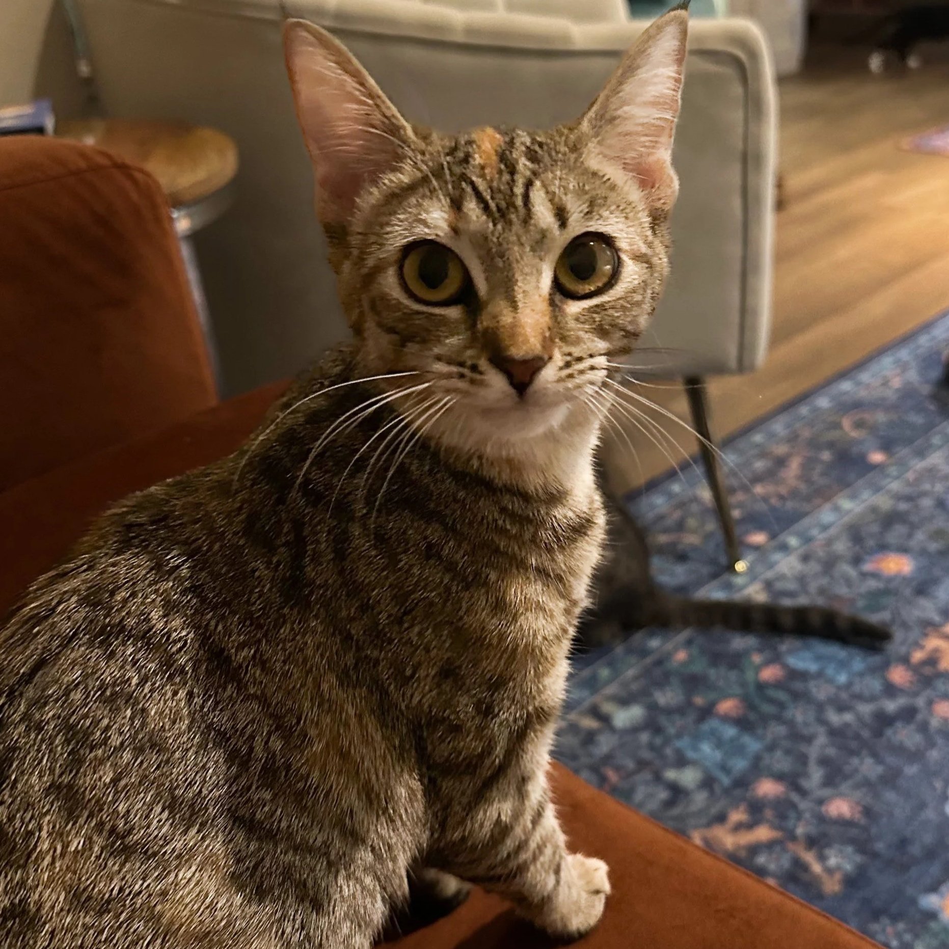 Hi, my name is Celine Dion. I am a 6-month-old, female, tabby kitten. I am a lovable, clever, and friendly girl who really enjoys cuddling, tummy rubs, being gently brushed, chasing treats, and relaxing in a cozy hammock. I can’t wait to share my warmth and sweetness with you! I get along well with cats of all ages. I haven’t been introduced to dogs or children yet.