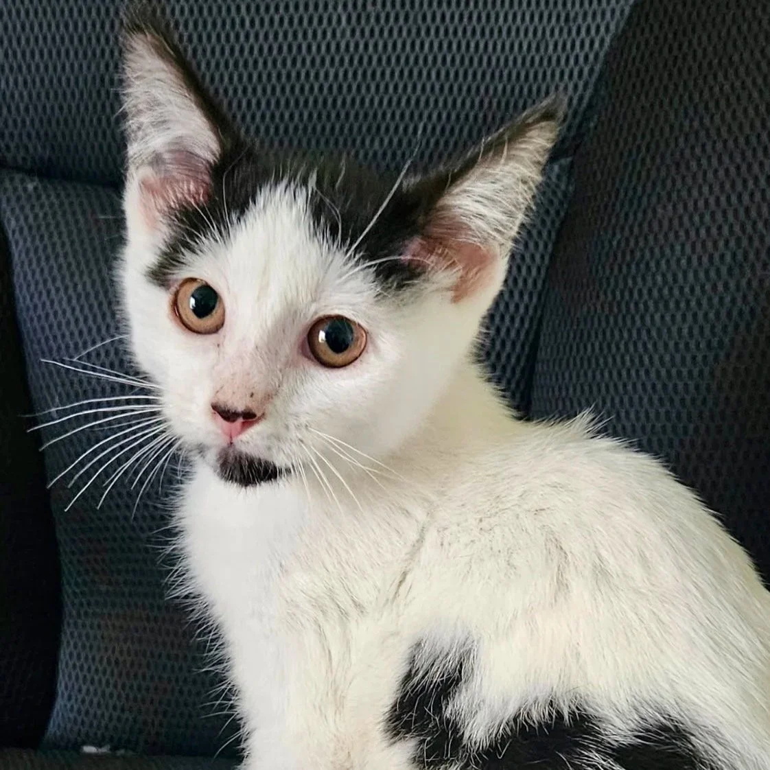 Hi, my name is Chartreuse. I am a 4-month-old, female, black and white cow kitten. My siblings and I were all named after different types of liqueurs! I am a sweet, pretty girl. I enjoy being petted and playing with other cats/kittens. I haven’t been introduced to dogs or to small children yet. Will you give me a forever home?