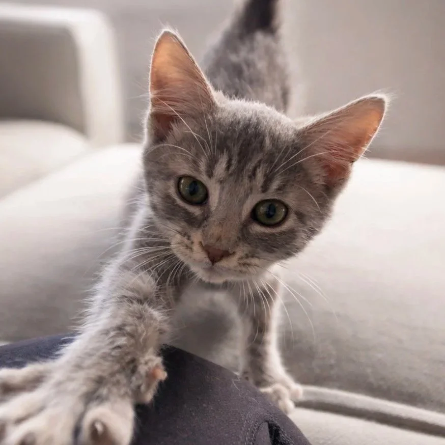 Meet Fields of Grey, a spunky little girl full of personality! I’m 3 months, am very playful, curious, and absolutely love to wrestle and tumble around with my brother and sister. I’ve got lots of energy and even more love to give, and I’d be the perfect little spark to liven up your home. I am friends with my Foster home small dog and cats that helped raised me! If you’re looking for a fun, feisty, and adorable companion, I might just be your girl!