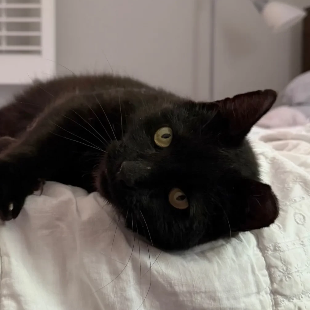 Hi, my name is Honkey Cat 2. I am a 3-year-old, male, black cat who looks just like Bagheera! If you’ve ever wanted to hug a panther, I’m the perfect candidate. I am not only big in size, but I’m also the biggest lover boy you’ll ever meet! I LOVE to be petted and will demand it! I make the best air biscuits that you will ever see. Come meet me at the Purrfect Bean and fall in love! I get along with other cats. I haven’t been introduced to dogs or to small children yet.