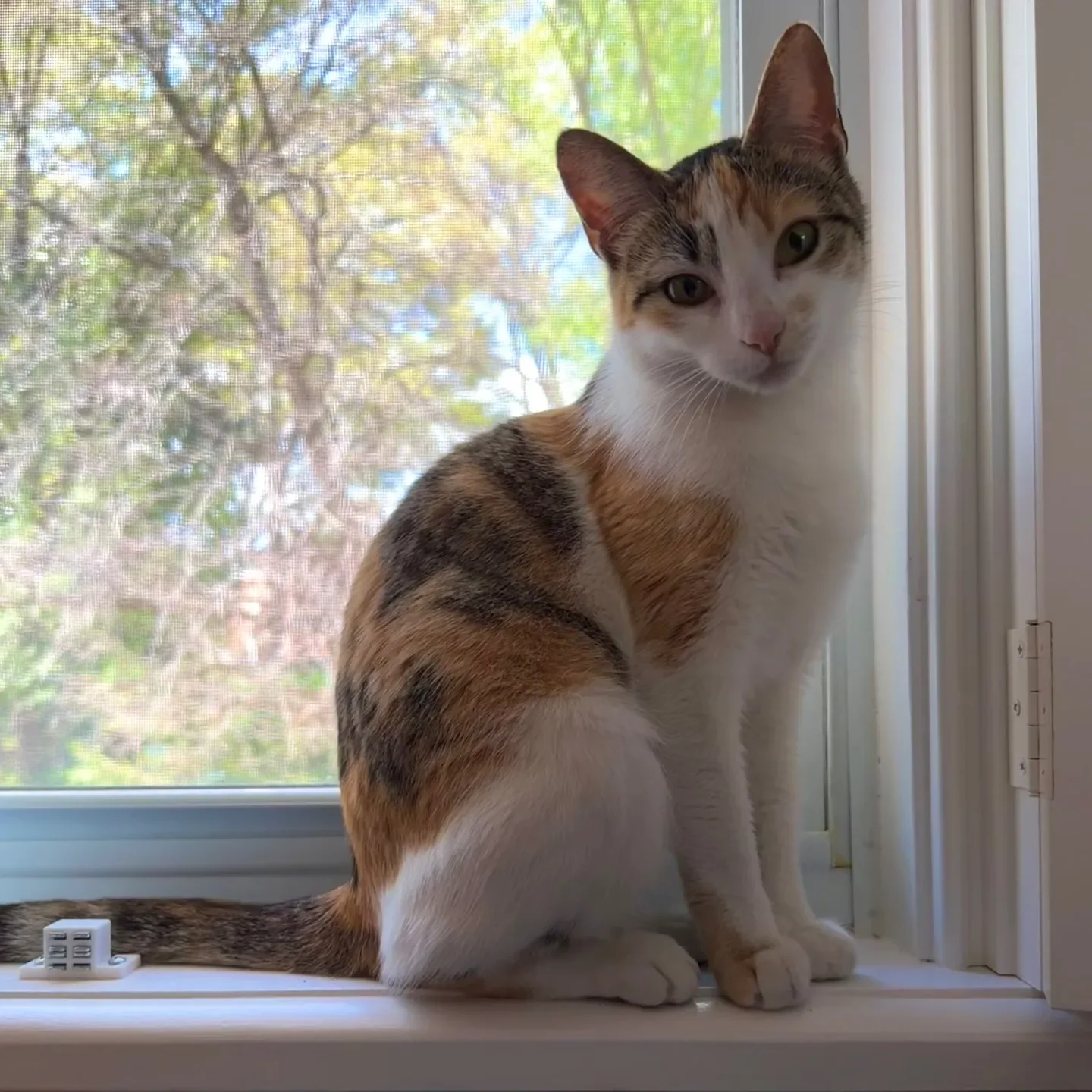 Hi, my name is Island Girl. I am a 1-year-old, female, Tabico cat currently residing at the Purrfect Bean. I have a beautiful coat with calico colors AND tabby markings! I am a sweet, petite girl who loves pets and is supremely soft. I like to explore and am very interested in boxes. I’m also a professional biscuit baker! I’ll follow you around for more pets and would love to find my forever home by your side. I am good with other cats/kittens. I haven’t been introduced to dogs or to small children yet.