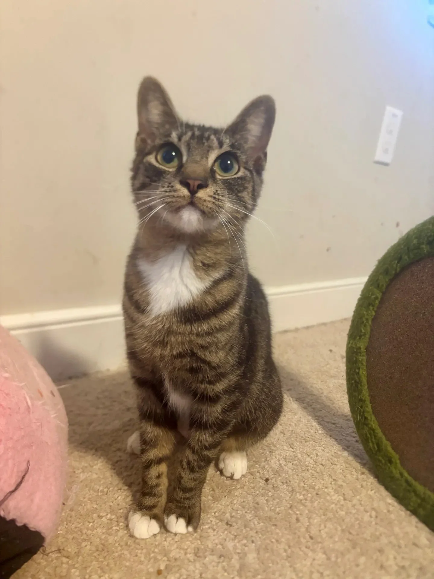 Hi, my name is Roy. I am a 6-month-old, female, tabby and white kitten. Purring Hearts took me in from another Virginia rescue to give me a better chance at finding my forever home. I am a petite little lady with so much love to give! I love to be by your side and will purr up a storm! I love chasing wand toys and playing with my foster siblings. I haven’t been introduced to dogs or to small children yet. I am friendly, curious, and ready to bring love and fun into my forever home!