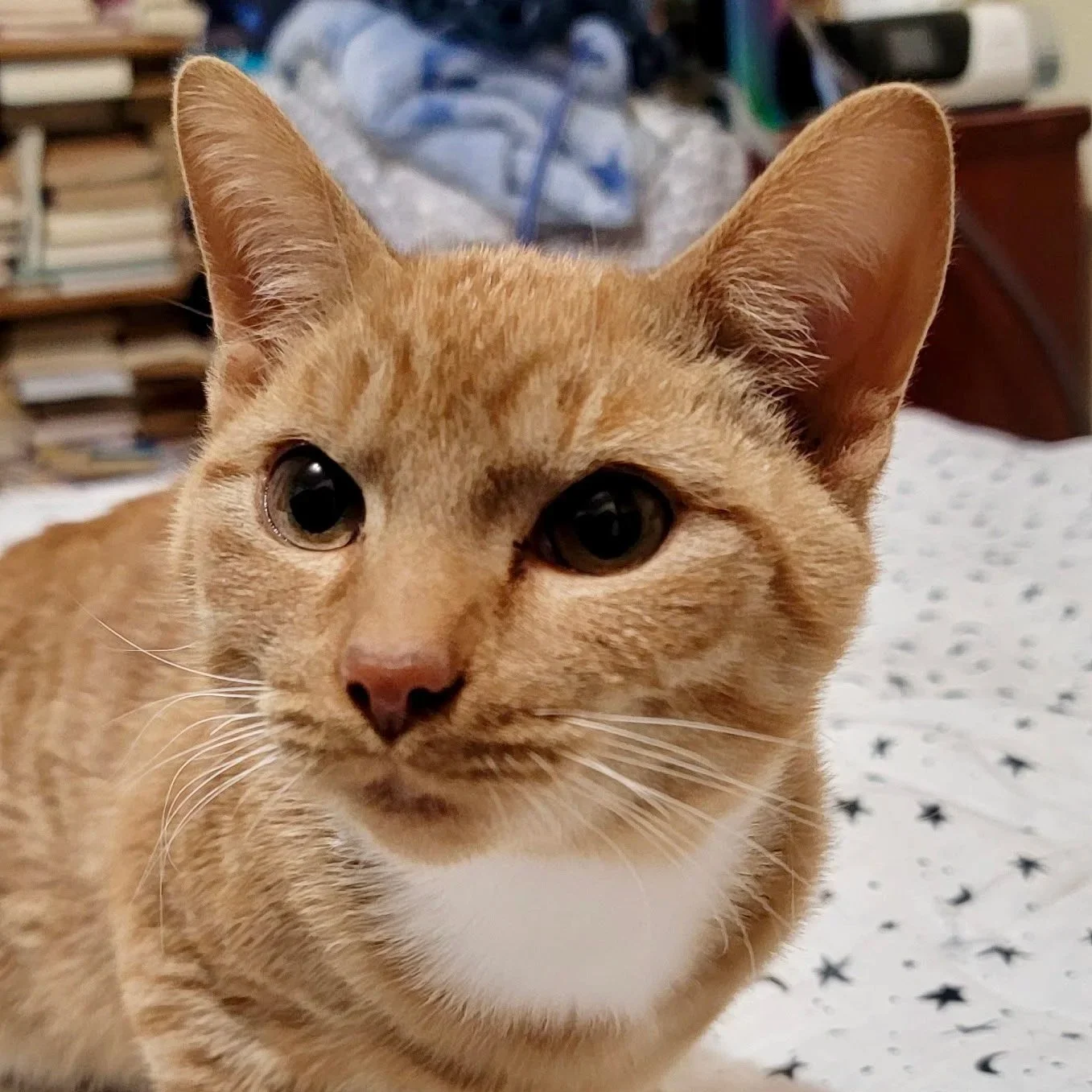 Hi, my name is Turbo. I am a 7-month-old, male, orange tabby kitten with a white bib and white feet. I am a sweet and loving boy, and very talkative! I love to play with the younger foster kittens and get into everything. I also enjoy being loved on and held. I am the biggest kitten in my foster home and tend to want to confront my foster mom’s adult cats. I will not stand down to them. So, I would likely do best being adopted with a younger cat friend. I haven’t been introduced to dogs or to small children yet.